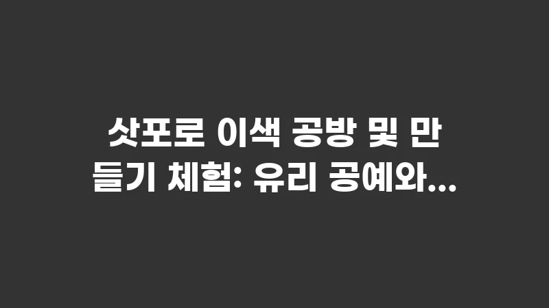 삿포로 이색 공방 및 만들기 체험은 쇼핑으로 구매한 물건과는 비교할 수 없는 가치와 추억을 선사합니다. 오타루의 유리와 오르골이든, 삿포로의 가죽과 도자기든, 당신의 손으로 직접 만든 기념품은 홋카이도 여행의 가장 소중한 흔적이 될 것입니다. 이 가이드가 당신의 창의적인 여정에 도움이 되기를 바랍니다.