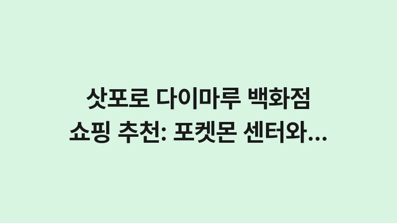 ➡️ 삿포로 3대 백화점 쇼핑 가이드: 다이마루, 미츠코시, 파르코 비교 분석