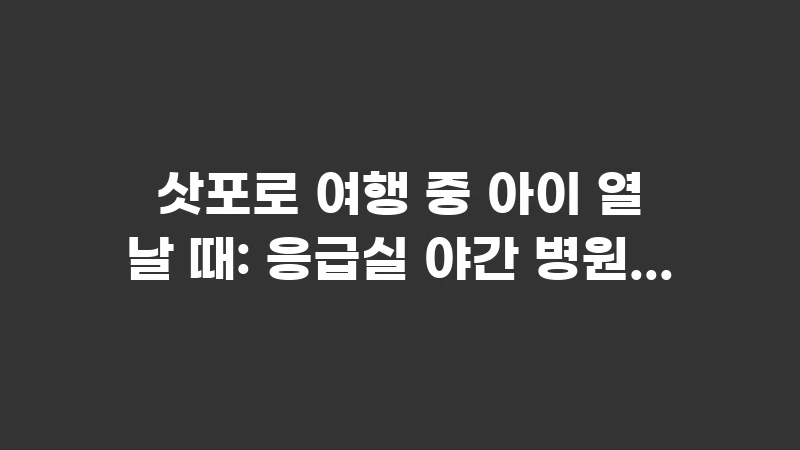 👤 사례 분석: 밤 11시, 아이가 갑자기 고열이 나자 S씨는 당황했습니다. 미리 확보한 삿포로 시내 대형 병원 응급실을 방문했지만, 의료진과의 일본어 소통에 어려움을 겪었습니다. S씨는 미리 준비한 ‘아이 증상에 대한 일본어 문장’과 ‘휴대폰 번역 앱’을 활용하여 증상을 설명했고, 다행히 신속하게 진료를 받을 수 있었습니다. S씨는 “주요 증상에 대한 일본어 표현을 미리 메모해 두는 것이 생명을 좌우할 수 있다”고 조언했습니다.