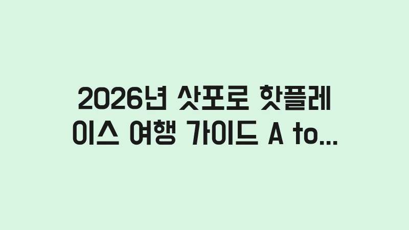 2026년 삿포로 핫플레이스 핵심 분석: 왜 새로운 곳에 주목해야 할까?