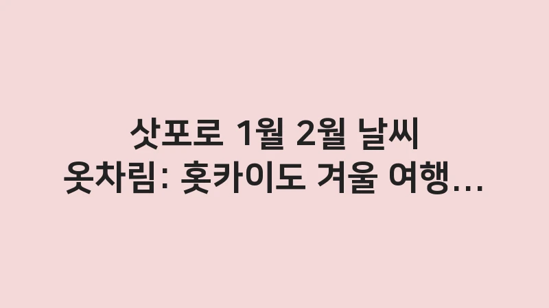제가 삿포로에서 직접 겪은 경험을 바탕으로, 이 글은 극한의 추위와 눈을 완벽하게 막아주는 ‘겨울 생존 코디 팁’과 ‘방한부츠 선택의 모든 것’을 구체적인 수치와 함께 제공합니다. 이 가이드만 따른다면 추위에 떨지 않고 눈 축제를 온전히 즐길 수 있습니다.