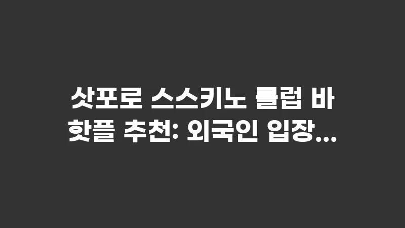 삿포로 스스키노 클럽 바 핫플 추천은 당신의 2026년 삿포로 스스키노 밤문화 여행에 가장 짜릿하고 즐거운 시간을 선사할 것입니다. 킹무와 같은 외국인 친화적인 핫플레이스를 중심으로, 여권을 지참하고 복장 규정을 확인하는 등 철저한 준비를 통해 안전하고 뜨거운 밤을 보내세요.