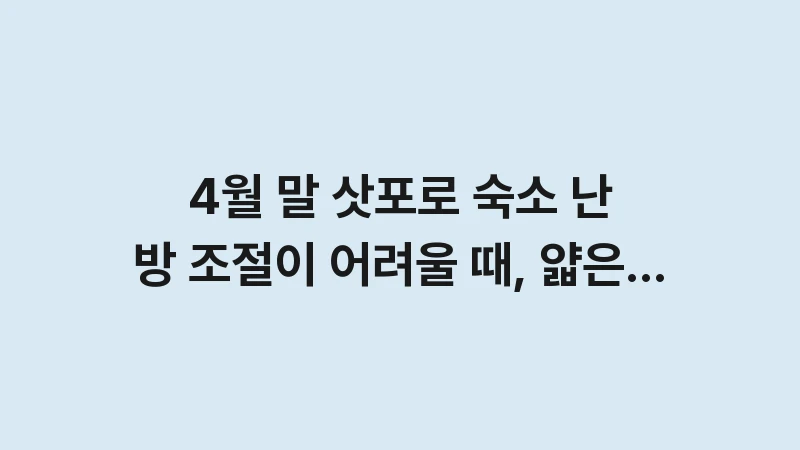 ✅ 교훈: I씨의 경험은 4월 말 삿포로 숙소 난방 조절이 어려울 때 외부 온도에 맞춘 두꺼운 잠옷 대신, 실내 난방에 맞춘 얇은 잠옷이 훨씬 중요하다는 것을 보여줍니다. 얇은 잠옷과 덧신은 쾌적한 수면 환경을 만드는 가장 중요한 준비물입니다.