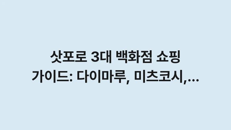 삿포로 도심 쇼핑의 핵심은 단연 3대 백화점입니다. 삿포로역의 다이마루, 오도리역 인근의 미츠코시와 파르코는 각기 다른 매력을 가지고 있어, 쇼핑 목표에 따라 어느 곳을 먼저 방문할지가 중요합니다.