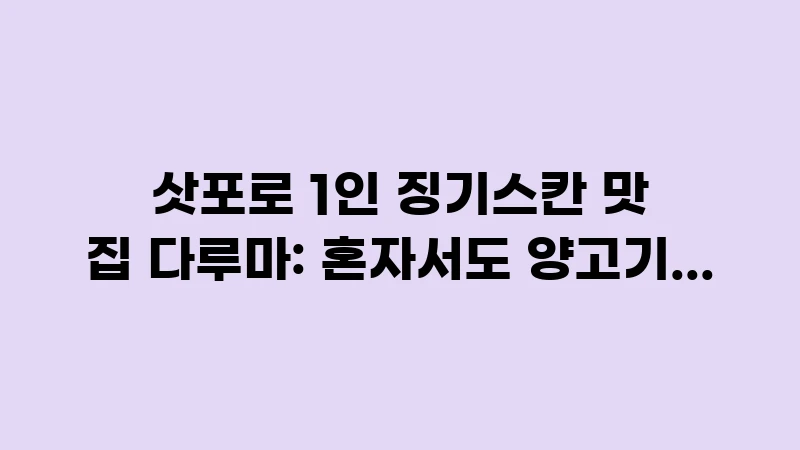 사례 분석: 👤 사례 분석: 40대 남성 여행가 D씨는 다루마 본점 앞에 도착했을 때 긴 줄을 보고 당황했지만, 바로 근처의 다루마 6.4점으로 이동했습니다. 오후 5시 10분에 도착한 D씨는 5분 만에 착석에 성공했으며, 쾌적한 환경에서 혼자 맥주와 징기스칸을 즐길 수 있었습니다. 혼행에서는 ‘최단 시간 착석’이 곧 최고의 만족도를 보장합니다.