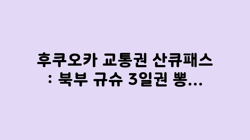 🏠 후쿠오카 교통권 산큐패스 핵심 관리 가이드
