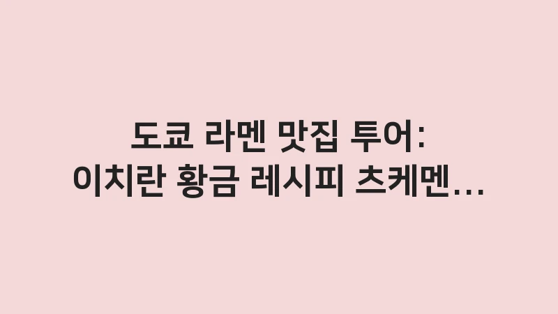 도쿄 라멘 맛집 투어를 계획 중이라면 주목하세요! 이치란 라멘 황금 레시피부터 츠케멘 성지 야스베에까지, 도쿄 곳곳의 숨겨진 면 요리 맛집과 주문 팁을 완벽하게 정리했습니다. , 이어서