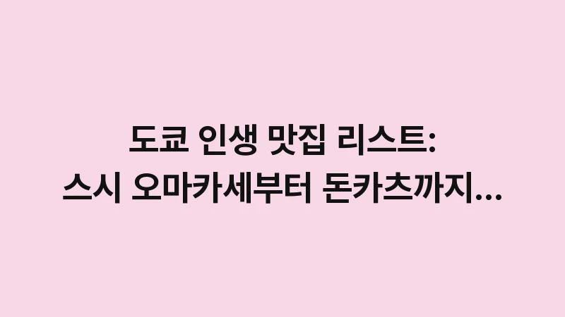 도쿄 인생 맛집 리스트를 확인하고 미식 여행의 정점을 찍으세요. 스시 오마카세부터 육즙 가득한 돈카츠, 장어덮밥까지 현지인도 줄 서서 먹는 진짜 맛집들만 엄선하여 상세히 분석했습니다. , 이어서