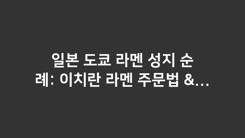 도쿄 라멘 성지 순례 가이드! 이치란 라멘 주문법과 현지인 줄 서는 츠케멘 맛집을 공개합니다. 웨이팅 시간을 아끼는 꿀팁을 확인하세요. , 이어서