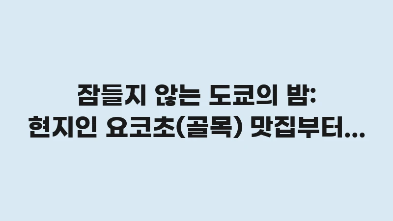 잠들지 않는 도쿄의 밤: 현지인 요코초(골목) 맛집부터 안전한 클럽까지