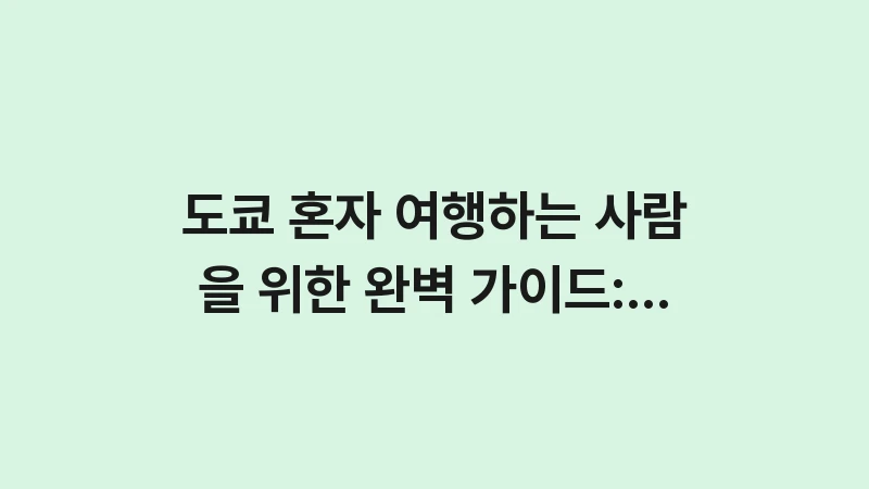 도쿄 혼자 여행하는 사람을 위한 완벽 가이드: 혼밥부터 숙소, 안전까지