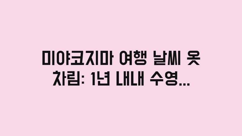 미야코지마는 1년 내내 수영이 가능할까요? 월별 평균 수온 데이터와 실제 체감 온도를 바탕으로 ‘수영 가능 여부’를 팩트체크해 드립니다. 겨울철 스노클링을 위한 웻슈트 두께 추천과 계절별 물놀이 팁을 확인하세요. , 이어서