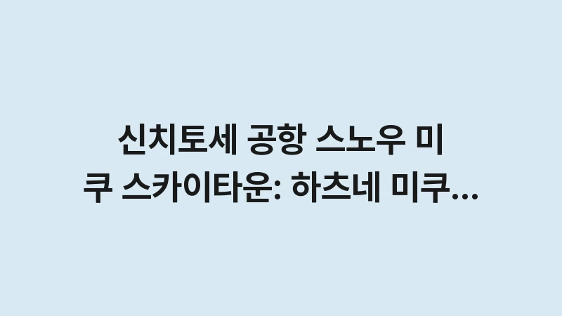 신치토세 공항 스노우 미쿠 스카이타운 방문 가이드입니다. 홋카이도 한정 하츠네 미쿠 피규어 및 굿즈 쇼핑 팁과 함께 공항 내 스카이타운의 위치, 영업시간, 면세 정보를 상세히 알려드립니다. , 이어서