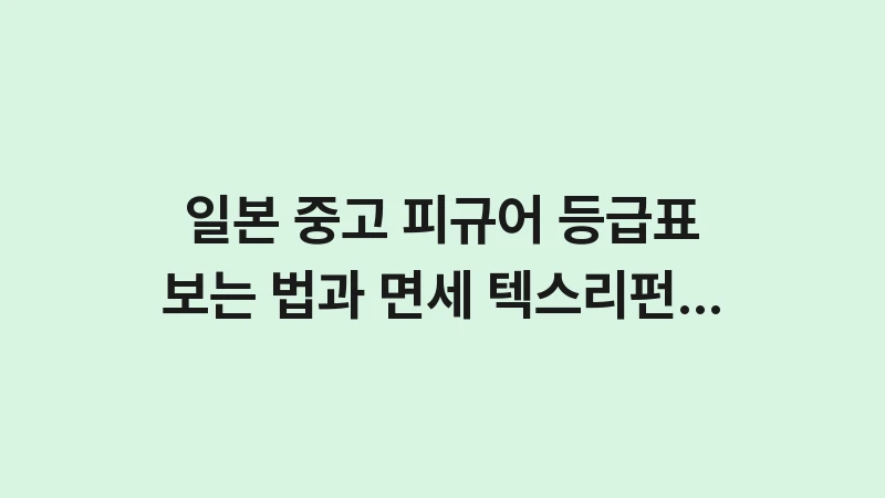 일본 중고 피규어 등급표(S~C) 보는 법을 완벽 해설하고, 면세(텍스리펀) 혜택을 놓치지 않는 방법을 정리했습니다. 고가 피규어 구매 시 주의사항과 꼼꼼한 포장 팁까지 포함하여 후회 없는 쇼핑을 도와드립니다. , 이어서