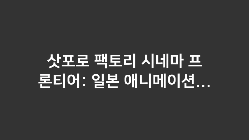삿포로 팩토리 시네마 프론티어에서 일본 애니메이션 극장판을 관람하는 방법을 안내합니다. 좌석 예매 팁, 현지 영화관 이용 노하우, 그리고 영화 관람 후 연계 가능한 삿포로 덕질 코스를 상세히 알려드립니다. , 이어서