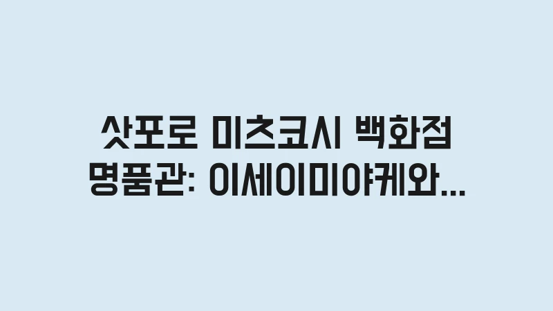 삿포로 미츠코시 명품 쇼핑: 이세이미야케, 꼼데가르송, 명품관 득템 팁을 공개합니다. 미츠코시의 차별화된 고급스러움과 효율적인 면세 시스템 이용 노하우를 상세히 확인하세요. , 이어서