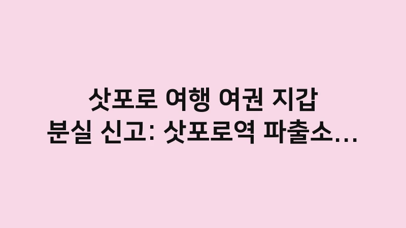 삿포로 여행 중 여권 지갑 분실 신고 절차 A to Z: 삿포로역 파출소 분실물 접수 방법, 필요 서류, 그리고 긴급 여권 발급을 위한 첫 단계 대처법을 상세히 정리했습니다.를 출력합니다. , 이어서