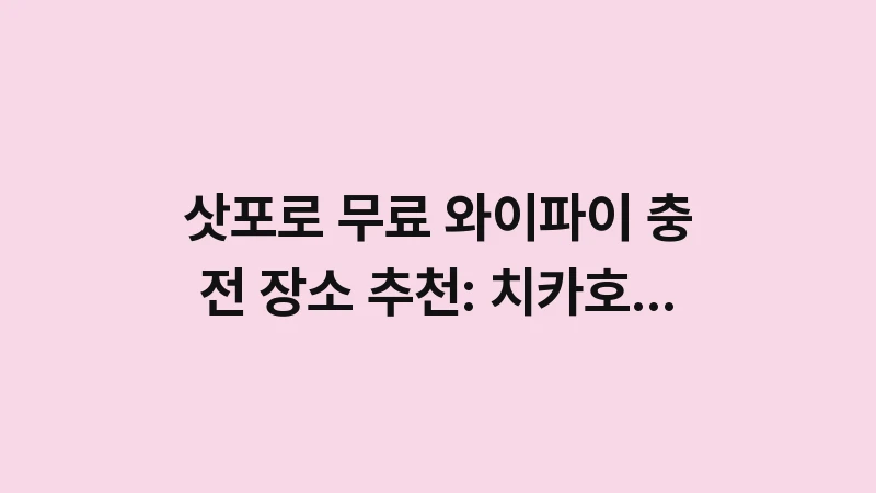 삿포로 무료 와이파이 충전 장소 추천: 치카호 지하보도, 스타벅스, 공공시설 등 삿포로 시내에서 빠르고 쾌적하게 인터넷과 충전을 해결하는 숨겨진 꿀팁을 상세히 알려드립니다.를 출력합니다. , 이어서
