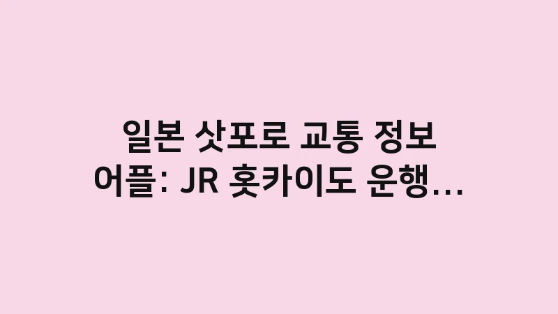 일본 삿포로 교통 정보 어플로 JR 홋카이도 운행 정보와 버스 시간표를 실시간으로 확인하세요. 폭설, 지진 등 돌발 상황 시 열차 지연 및 운행 중단에 대처하는 필수적인 앱 활용 노하우를 상세히 알려드립니다. , 이어서