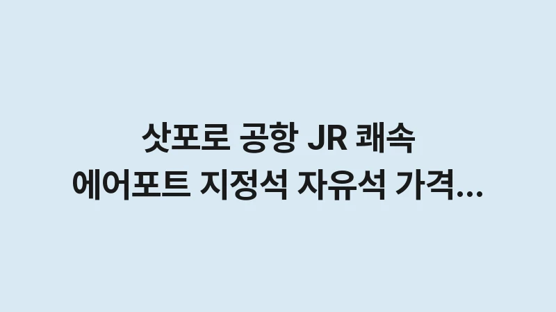 삿포로 공항 JR 쾌속 에어포트유석, 지정석 가격 차이와 예매법, 그리고 좌석 선택 꿀팁을 분석합니다. 37분 만에 삿포로 시내로 가는 가장 효율적인 방법을 선택하세요. , 이어서
