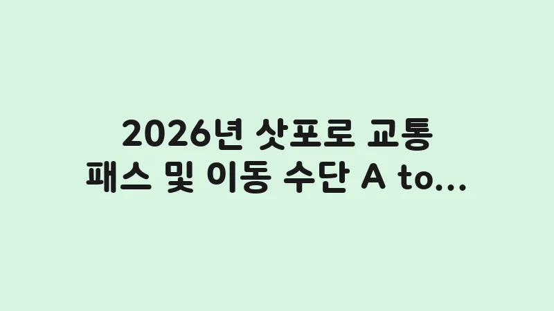 삿포로 교통 패스 2026년 최신 가이드로 공항에서 시내, 근교까지 모든 이동 수단을 완벽하게 정리했습니다. 여행 일정과 예산에 맞는 최적의 교통 계획을 세우세요. , 이어서