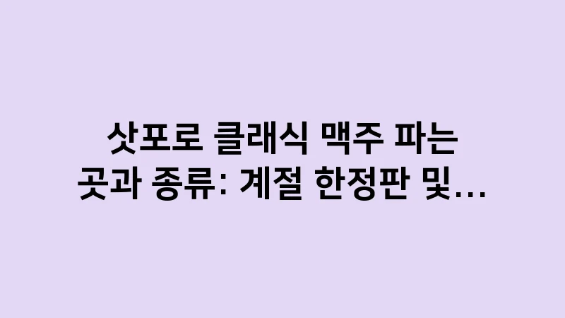 삿포로 클래식 맥주 파는 곳과 종류, 그리고 계절 한정판 및 하이볼 추천 가이드. 홋카이도에서만 마실 수 있는 이 맥주를 가장 저렴하게 득템하는 노하우와 최고의 야식 꿀조합을 상세히 알려드립니다. , 이어서