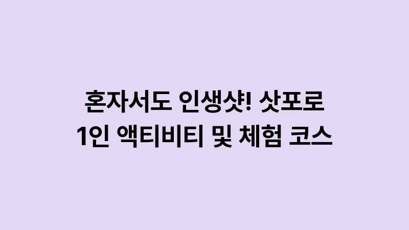 삿포로 1인 액티비티 및 체험 코스: 혼자서도 인생샷을 건지는 사진 찍는 법과, 근교 당일치기 온천, 1인 노래방 등 특별한 혼행 코스를 완벽하게 정리했습니다. , 이어서
