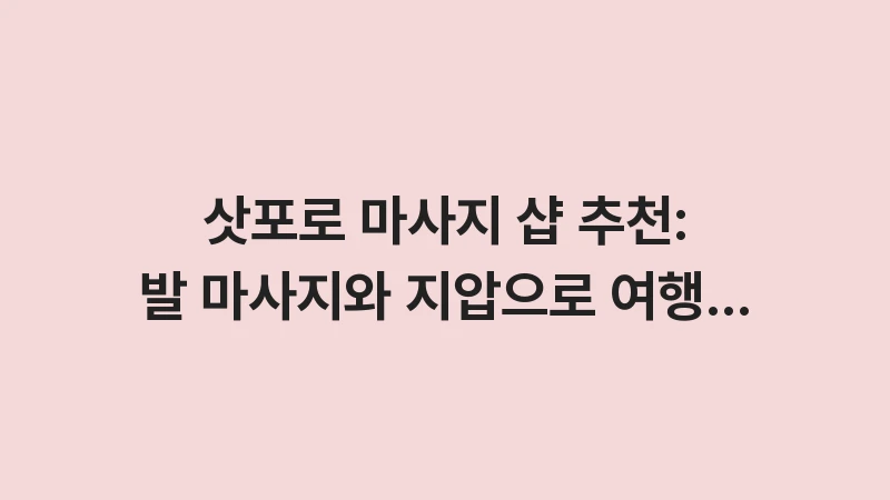 삿포로 마사지 샵 추천: 발 마사지와 지압으로 여행 피로 풀기! 스스키노 근처 가성비 좋은 샵 가격 비교, 코스 선택 팁, 예약 노하우까지 총정리합니다. (2026년 기준) , 이어서