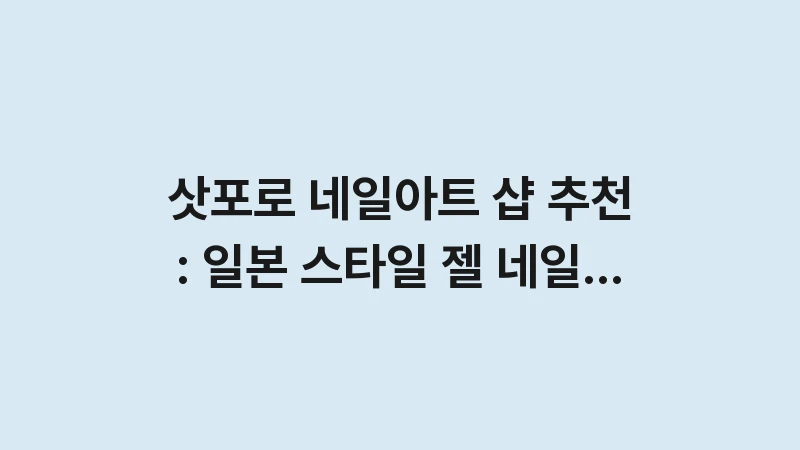 삿포로 네일아트 샵 추천: 일본 스타일 젤 네일 가격과 디자인 트렌드! 핫페퍼 뷰티 예약 팁, 삿포로역/오도리 근처 추천 샵 리스트까지 총정리합니다. (2026년 기준) , 이어서