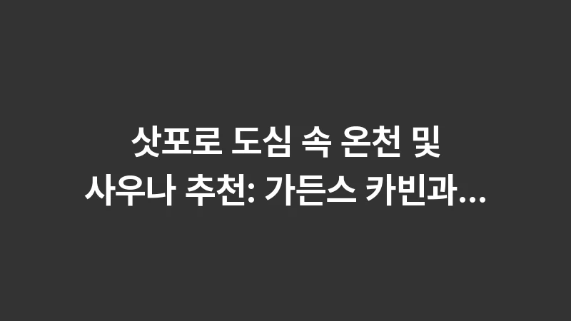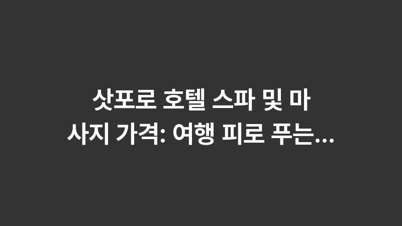 삿포로 호텔 스파 및 마사지 가격: 여행 피로 푸는 힐링 코스 추천! 럭셔리 호텔 스파 이용 팁, 전문 마사지 샵 비교, 가성비 발 마사지 정보까지 총정리합니다. , 이어서