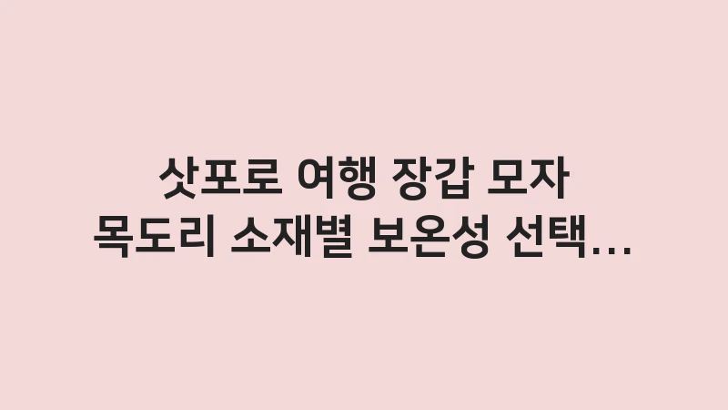 삿포로 여행 장갑, 모자, 목도리의 소재별 보온성을 비교 분석하고, 영하의 추위에서 체온 손실을 막는 최적의 방한 소품 선택 가이드를 제시합니다. , 이어서