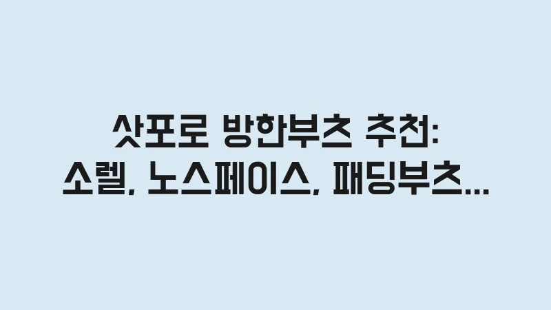 삿포로 방한부츠 추천 리스트와 소렐, 노스페이스 등 인기 브랜드의 방수, 보온, 미끄럼 방지 기능을 비교합니다. 눈길 안전을 위한 패딩부츠 선택 팁을 확인하세요. , 이어서