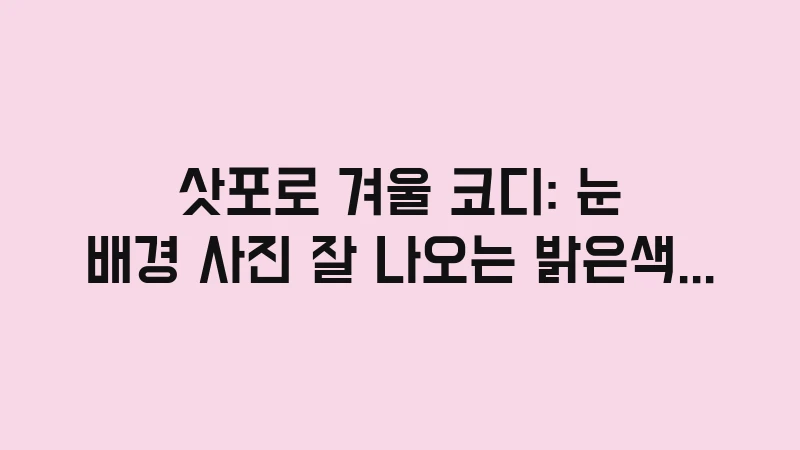삿포로 겨울 코디를 위한 ‘눈 배경 사진 잘 나오는 밝은색 옷’ 스타일링 팁을 제안합니다. 보온성과 사진 효과를 동시에 잡는 색상 선택과 레이어드 팁을 확인하세요. , 이어서