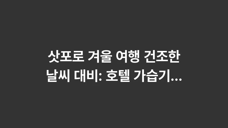 삿포로 겨울 여행 시 반드시 대비해야 할 ‘건조함’ 해결책. 호텔 가습기 대체법, 립밤/핸드크림 선택 가이드, 감기 예방을 위한 실내외 온도차 대비법을 총정리했습니다. , 이어서