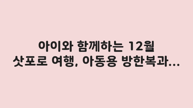 아이와 함께하는 삿포로 12월 여행, 아동용 방한복과 스키바지 준비 팁. 눈밭에서 놀 때 안전과 보온을 동시에 잡는 레이어링 공식과 필수 용품을 알려드립니다. , 이어서