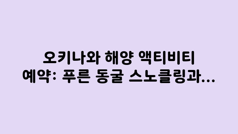오키나와 해양 액티비티 예약 및 비교 가이드! 푸른 동굴 스노클링, 케라마 제도 호핑투어, 투명 카약 등 최고의 해양 레저를 안전하게 즐기는 팁을 제공합니다. , 이어서