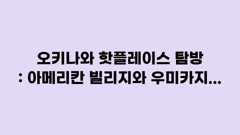 오키나와 핫플레이스 탐방 완벽 가이드! 아메리칸 빌리지 야경 코스, 우미카지 테라스 카페 추천, 현지인 포토존까지! 감성적인 오키나와 여행을 계획하세요. , 이어서