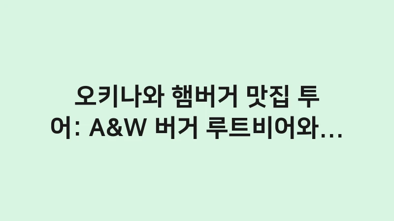 오키나와 햄버거 맛집 투어 가이드! A&W 버거의 독특한 루트비어 체험부터 캡틴 캥거루의 인생 수제 버거까지, 2026년 최신 가격과 웨이팅 팁을 포함하여 비교 분석합니다. , 이어서