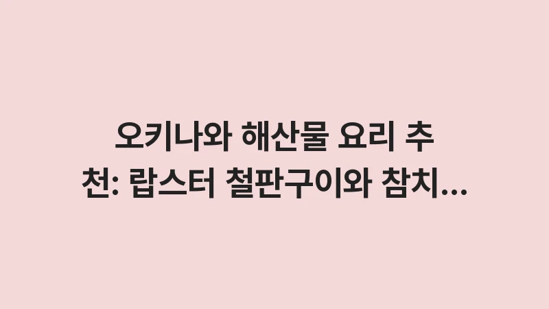 오키나와 해산물 요리 추천, 랍스터철판구이부터토마린 항구참치 덮밥까지 완벽 가이드. 신선도와가성비를 모두 잡는해산물맛집로드맵을 제시합니다. , 이어서