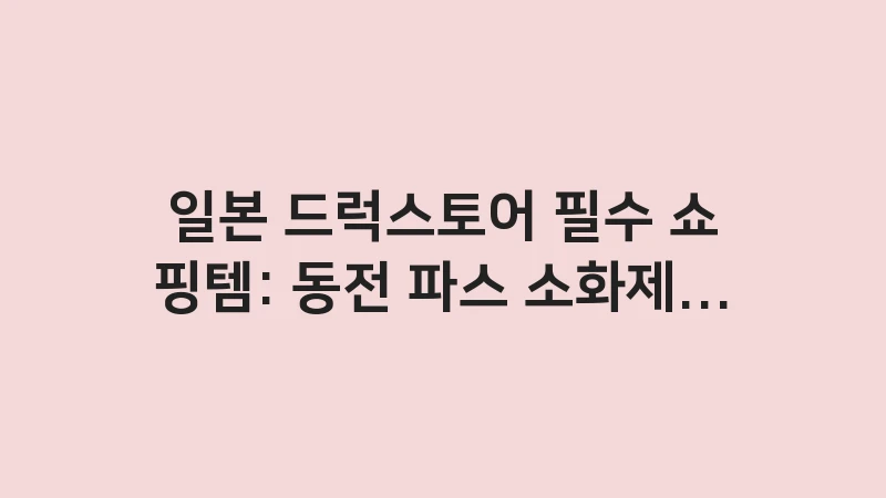 일본 드럭스토어 필수 쇼핑템: 동전 파스, 소화제, 안약 등 의약품 베스트 7을 선정하고 효과적인 사용법과 최저가 구매 팁을 전문가의 시선으로 상세히 분석했습니다. , 이어서
