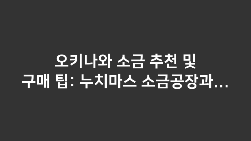 오키나와 소금 추천 및 구매 팁: 누치마스 소금공장 방문 가이드와 요리용 설염 등 특산품 소금의 종류와 활용법, 최적 구매 장소를 상세히 분석했습니다. , 이어서