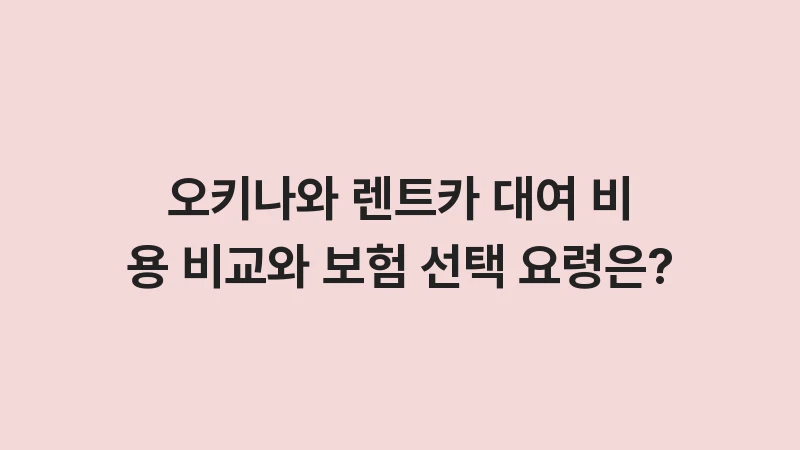 오키나와 렌트카 대여 비용 비교와 보험 선택 요령을 분석합니다. 경차, 소형차, SUV 등 차종별 실제 가격대와 면책보상, NOC 면책 특약 등 필수 보험 선택 노하우를 상세히 알려드립니다. 이 글 하나로 합리적인 렌트카 예산을 세우세요. , 이어서