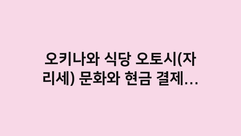 오키나와 식당 오토시(자리세) 문화와 현금 결제 주의점은? 이자카야 방문 시 반드시 알아야 할 오토시의 정체와 거절 불가 이유, 그리고 현금 결제 시 고액권 사용 매너까지, 현지 식문화 에티켓을 상세히 알려드립니다. , 이어서