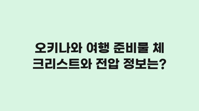 오키나와 여행 준비물 체크리스트와 전압 정보: 날씨별 옷차림, 유심/eSIM 선택 요령, 110v 돼지코 어댑터 필요 여부까지. 놓치면 후회할 오키나와 여행 필수품과 체크리스트를 완벽하게 정리했습니다. , 이어서