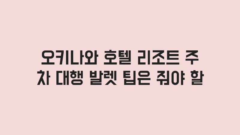 오키나와 호텔 리조트 주차 대행(발렛) 팁은 줘야 할까? 일본의 팁 문화와 주차 대행 서비스의 현지 관례를 분석합니다. 팁을 주려다 오히려 당황하는 상황을 피하고, 주차 요금에 대한 오해를 해결하는 모든 정보를 알려드립니다. , 이어서
