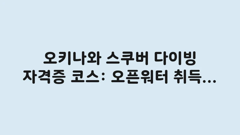 오키나와 스쿠버 다이빙격증(오픈워터) 취득 비용과 기간 완벽 분석! 현지 샵에서 실패 없이격증을 따는 코스 선택 기준, 준비물, PADI와 CMAS 코스 비교까지, 전문가의 경험으로 체계적인 로드맵을 제시합니다. , 이어서