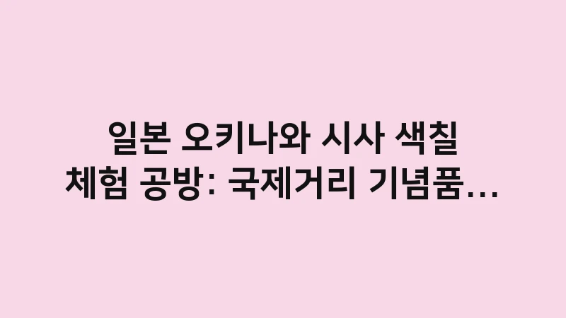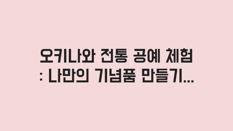오키나와 전통 공예 체험, 나만의 기념품 만들기 클래스 완벽 가이드! 류큐 유리, 산호 염색, 시사 색칠 등 4대 공예별 예약 팁, 소요 시간, 당일 수령 가능 여부를 전문가의 경험으로 상세 분석했습니다. 특별한 오키나와의 추억을 만들어 보세요. , 이어서