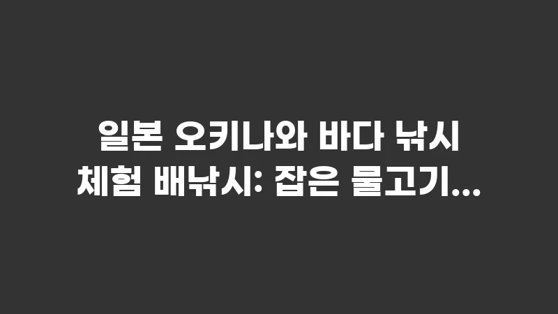 오키나와 바다 낚시 체험, 직접 잡은 물고기를 회 떠주는 식당까지 완벽 안내! 초보자도 대어를 낚는 배낚시 예약 팁, 가격, 준비물, 그리고 안전하고 맛있게 즐기는 전문가의 모든 노하우를 공개합니다. 놓치지 마세요. , 이어서