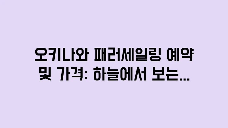 오키나와 패러세일링 예약부터 가격, 후회 없는 준비 팁까지 완벽 가이드! 하늘에서 에메랄드빛 산호초 바다를 만끽하는 법, 안전 수칙, 그리고 멀미 없이 즐기는 전문가의 노하우를 10년 차 여행가의 경험으로 상세히 알려드립니다. , 이어서