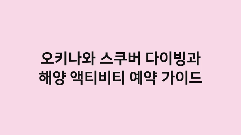 오키나와 스쿠버 다이빙과 해양 액티비티 예약 가이드